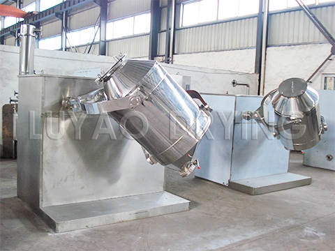 SYH series three-dimensional motion mixer has multi-directional movement of the mixing barrel, so that the material in the barrel crosses the mixing point more, the mixing effect is high, the uniformity can reach over 99.9%, and the maximum loading factor can reach 0.9 (normal mixing The machine is 0.4 to 0.6), the mixing time is short and the efficiency is high. The machine's mixing bucket body d···