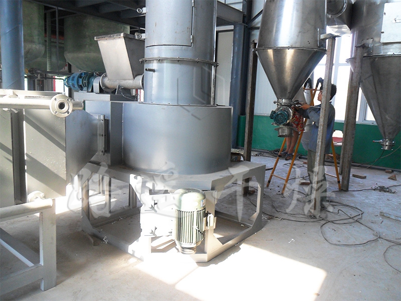 ● 干燥室裝有分級環及旋流片,物料細度和終水份可調。(如碳酸鈣終水份可調節器至≤0.1%)